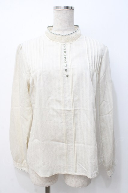 an another angelus / 配色リボンレーススタンドカラーブラウス 生成り Y-25-07-21-049-CA-BL-SZ-ZY