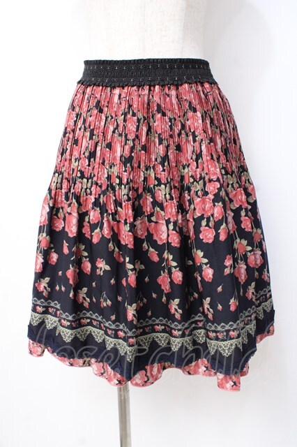 axes femme / フラワープリントプリーツスカート 黒 Y-25-07-21-125-AX-SK-SZ-ZI
