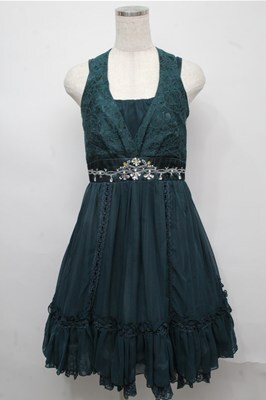 axes femme / レース切替ホルターネックシフォンワンピース グリーン S-25-07-20-045-AX-OP-HR-ZI [戻る]