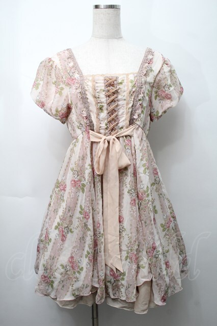 axes femme / タッセルローズストライプワンピース ピンク S-25-09-05-043-AX-OP-HR-ZS