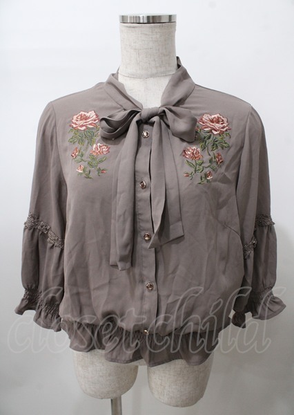 axes femme / バラ刺繍タイ付きブラウス モカ Y-25-07-23-048-AX-BL-SZ-ZI