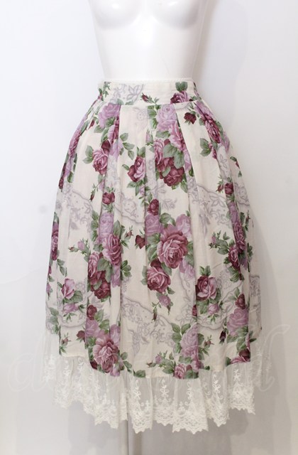 axes femme / ラフィネローズ柄タックスカート オフ×ラベンダー O-25-07-23-064-AX-SK-IG-ZT0829M