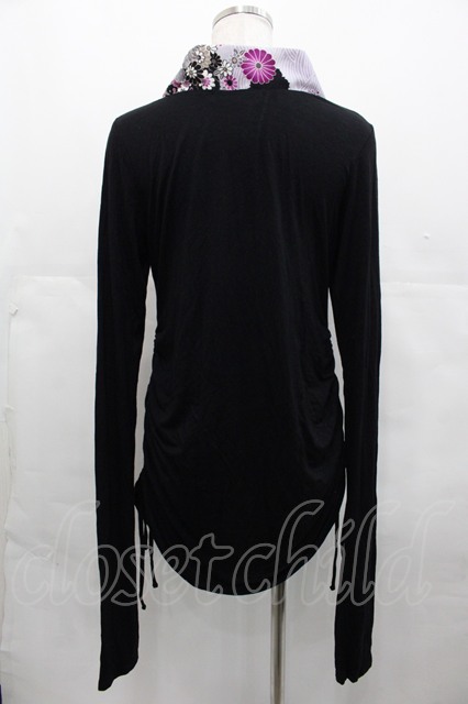 gouk / 和柄襟&もみじプリントカットソー 黒X紫 I-25-07-23-028-GO-TO-HD-ZI