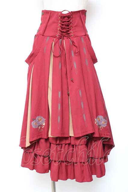 Ozz oneste / 椿刺繍袴スカート エンジ Y-26-01-20-140-OO-SK-SZ-ZS