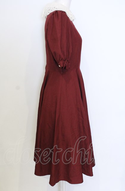 Innocent World / ハートのサーキュラーフレアーワンピース(五分袖) M ワイン×キナリ O-25-07-25-049-IW-OP-OW-OS