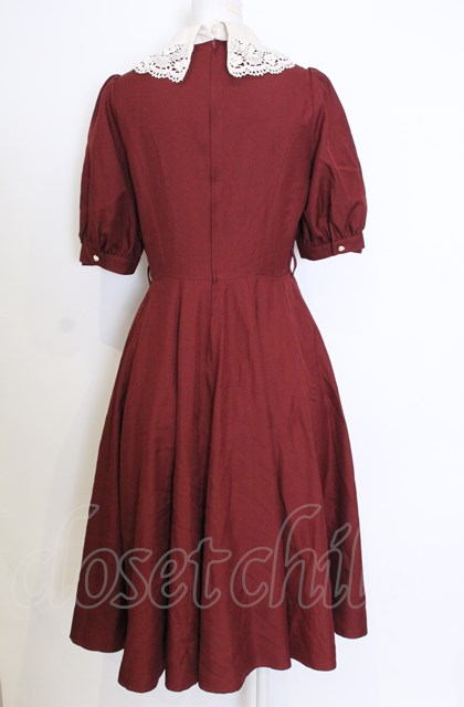 Innocent World / ハートのサーキュラーフレアーワンピース(五分袖) M ワイン×キナリ O-25-07-25-049-IW-OP-OW-OS