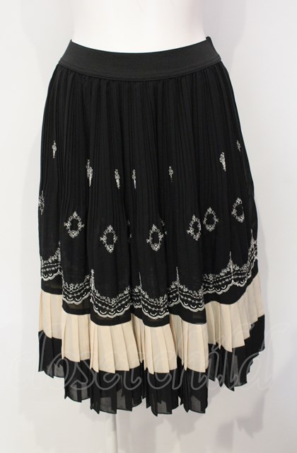 axes femme / パネル刺しゅうプリーツスカート クロ×アイボリー O-25-07-26-079-AX-SK-IG-ZT507
