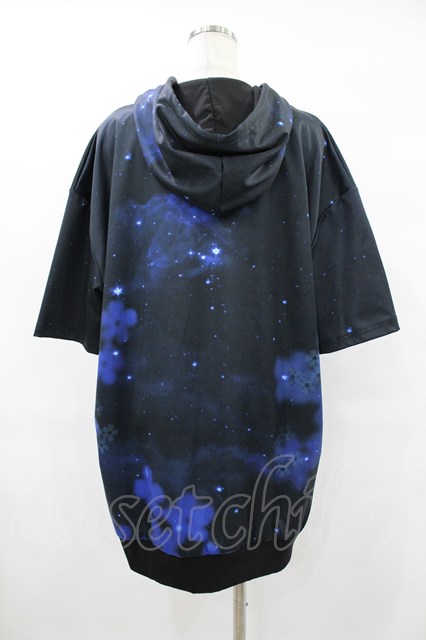 NieR Clothing / 総柄ZIP半袖パーカー 黒×青 H-25-08-04-1052-PU-TO-KB-ZT284
