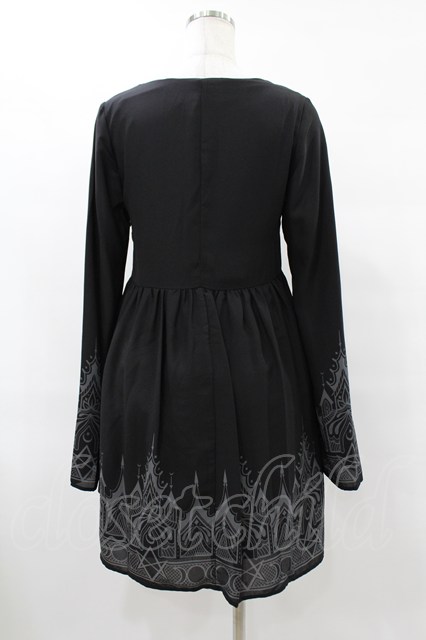 KILL STAR / 裾プリントワンピース XS 黒 H-25-08-04-1022-SL-OP-KB-ZH