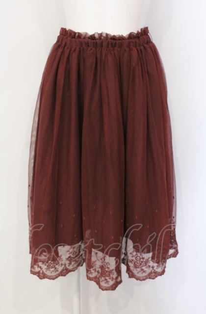 F&A / 裾刺繍チュールスカート ワイン O-25-07-28-024-LO-SK-IG-ZT221