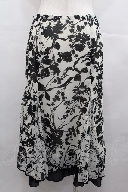INGEBORG / シルエットシフォンスカート アイボリーX黒 I-25-07-27-101-LO-SK-HD-ZI