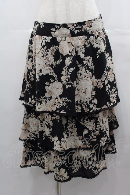 INGEBORG / ローズ柄2段フリルスカート 黒Xピンク I-25-07-27-102-LO-SK-HD-ZI [戻る]