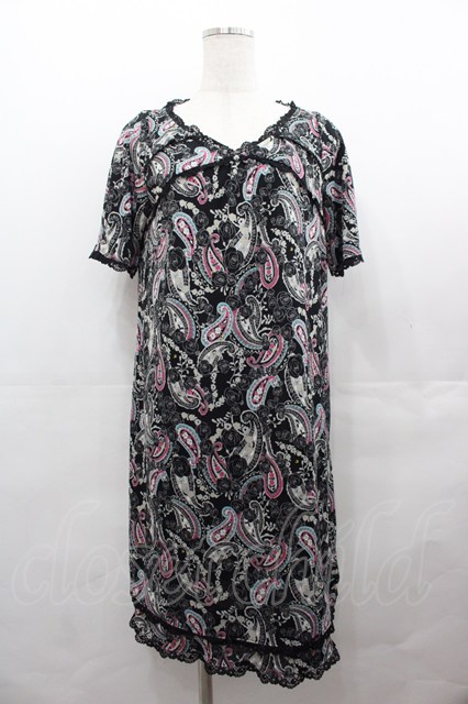 INGEBORG / ローズペイズリー総柄半袖チュニック 黒X白Xピンク I-25-07-27-085-LO-TO-HD-ZT077
