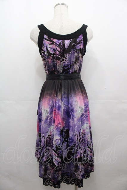 Ozz oneste / 菊&蝶柄ノースリーブワンピース 黒X紫 I-25-07-27-080-OO-OP-HD-ZI [戻る]