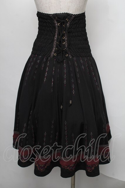 Ozz oneste / チャイナデザイン刺 スカート 黒 S-25-07-28-057-OO-SK-HR-ZS
