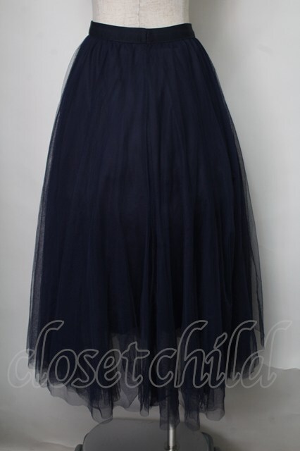 axes femme / ロングチュールスカート 紺 S-25-07-28-059-AX-SK-AS-ZS