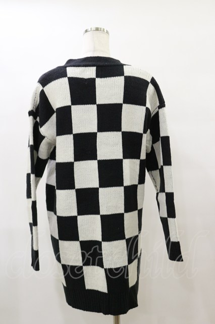 Drug Honey / ブロックチェックニットカーディガン 黒×オフ H-25-08-05-011-PU-TO-KB-ZH