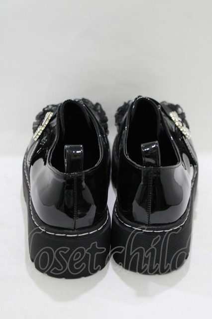 DearMyLove / 厚底メイドフリルシューズ 24.5cm ブラックエナメル H-25-08-06-078-EL-SH-NS-ZH