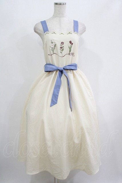axes femme / リボンフラワー刺繍ジャンスカ M 生成り/ブルー H-25-08-06-006-AX-OP-NS-ZH