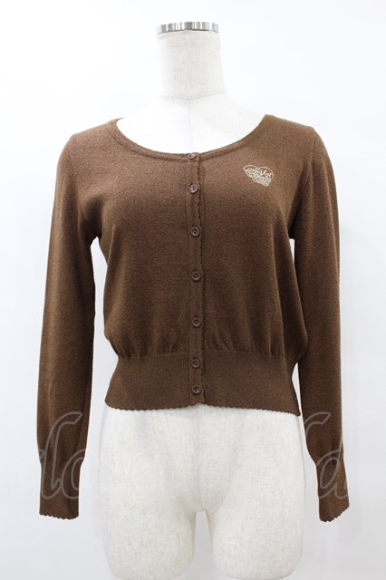 Emily Temple cute / ハートロゴ刺繍ラメニットカーディガン ブラウン H-25-08-07-1051-ET-TO-KB-ZH