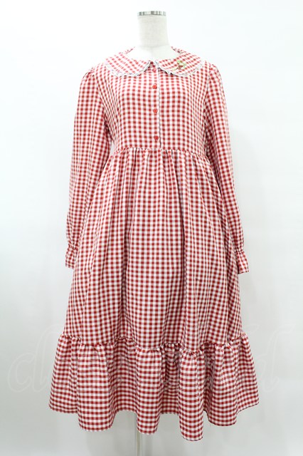 FLC / 星名桜子/ギンガムチェックワンピース LL レッド H-25-08-08-1028-0-OP-NS-ZH