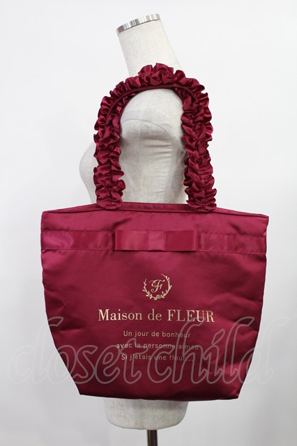 Maison de FLEUR / ブランドロゴフリルハンドルトートMバッグ ワイン H-25-08-09-1019-LO-BG-NS-ZH