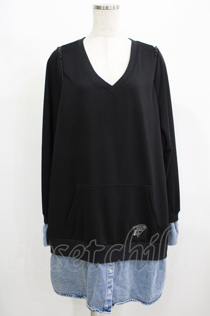 NieR Clothing / デニム切替オフショルワンピ 黒×ブルーデニム H-25-08-10-1057-PU-OP-KB-ZH [戻る]
