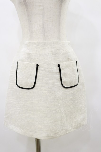 Ank Rouge / パイピングツイード台形スカート M ホワイト/ブラック H-25-08-12-054-CA-SK-NS-ZH
