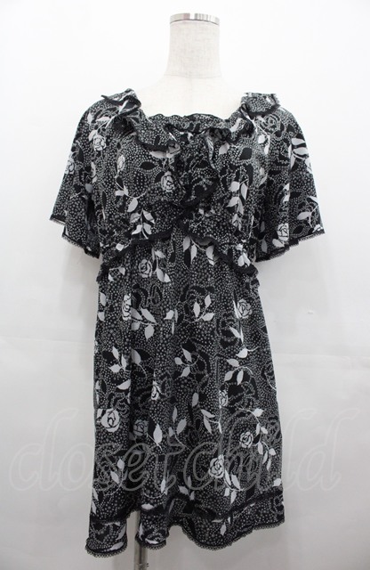 INGEBORG / 薔薇&ミニフラワープリントブラウス 黒X白 I-25-08-04-022-LO-BL-HD-ZI