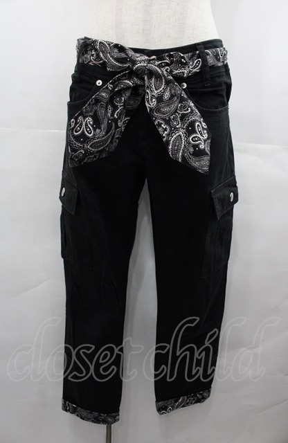 PEACE NOW / ペイズリーウエストリボンセットパンツ 黒X白 I-25-08-04-091-PU-PA-HD-ZI