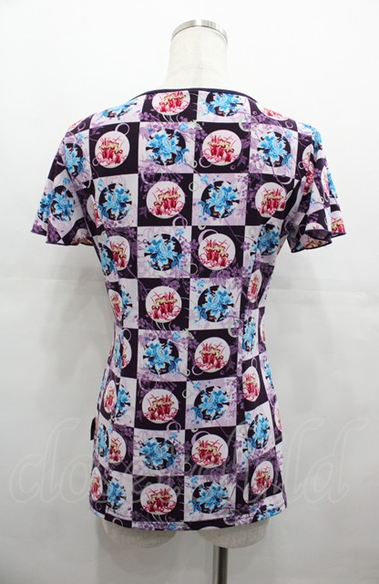 Ozz oneste / 市松柄Vネック半袖カットソー パープル I-25-08-04-011-OO-TO-HD-ZI