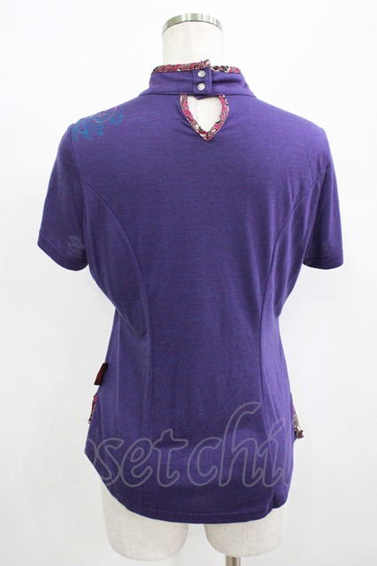 Ozz oneste / 刺繍チャイナカットソー 紫 H-25-08-13-061-OO-TO-KB-ZH