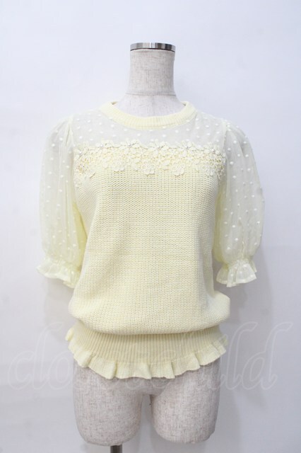 LIZ LISA / ドットメッシュスリーブニット 0 イエロー Y-25-08-07-009-LO-TO-SZ-ZT028