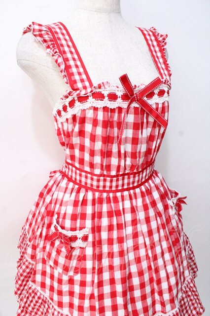 LIZ LISA / ギンガムエプロン風ワンピース 0 アカ Y-25-08-07-020-LO-OP-SZ-ZH [戻る]