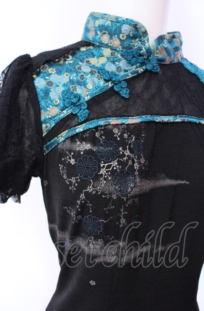 Ozz oneste / 和チャイナレース切替トップス ブラック×グリーン O-25-08-07-048-OO-TO-OW-OS [戻る]