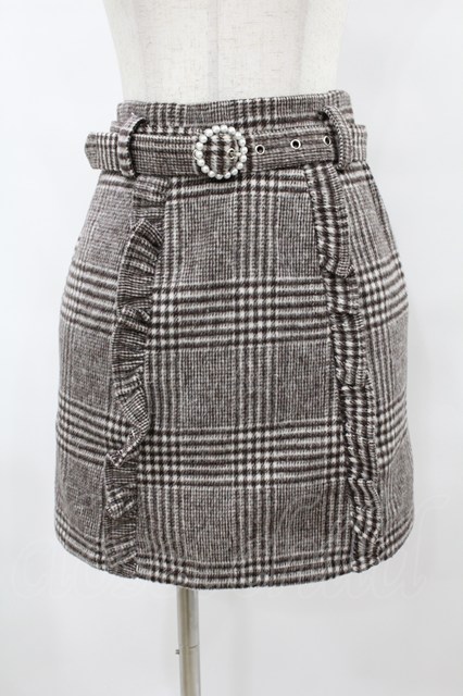 Honey Cinnamon / パールバックルチェック台形スカート Free ブラウン H-25-08-14-1023-LO-SK-NS-ZH