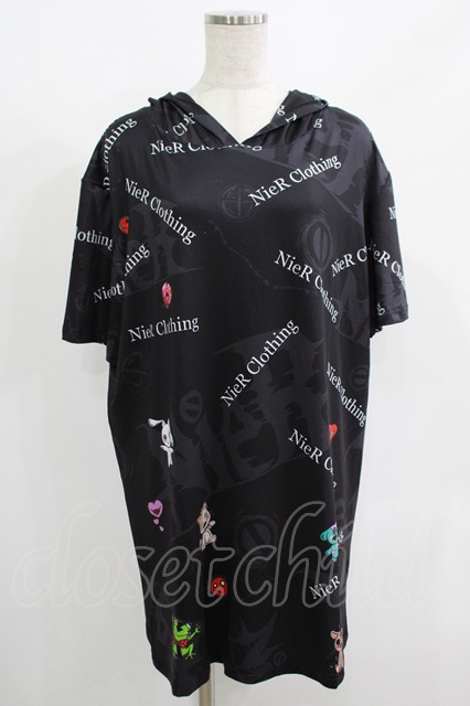 NieR Clothing / 総柄半袖プルパーカー 黒 H-25-08-15-060-PU-TO-KB-ZT164