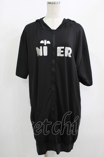 NieR Clothing / 半袖ZIPパーカー 黒 H-25-08-15-048-PU-TO-KB-ZT160