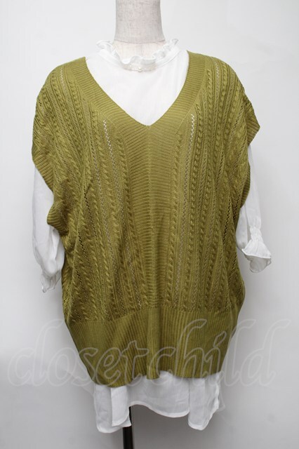 axes femme / ニットベストアンサンブル グリーン S-25-08-07-011-AX-TO-AS-ZS