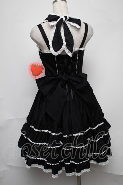BABY,THE STARS SHINE BRIGHT / リボンリボンジェラートジャンパースカート 黒x白 S-25-08-07-041-BA-OP-AS-ZS