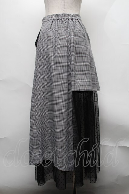Ank Rouge / チュール切替チェックスカート グレーx黒 S-25-08-07-053-CA-SK-HR-ZT499