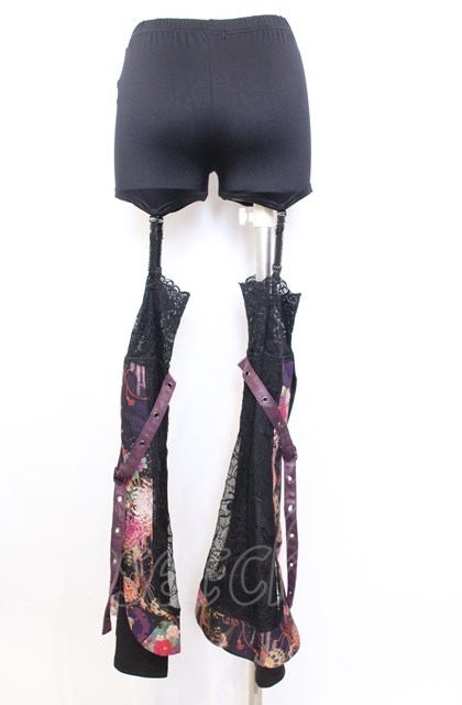 Qutie Frash / 和柄レッグパンツ(セパレート) ブラック×パープル O-25-08-08-004-QU-PA-IG-ZI