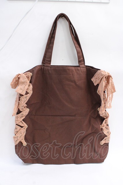 Maison de FLEUR / 原宿限定キャンバスレースアップトートバッグ F ブラウン Y-25-08-08-007-LO-BG-SZ-ZT500 [戻る]