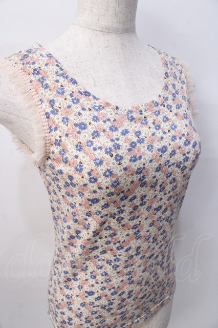 Emily Temple cute / フラワープリントタンクトップ M オフ白 Y-25-08-08-050-ET-TO-SZ-ZT102
