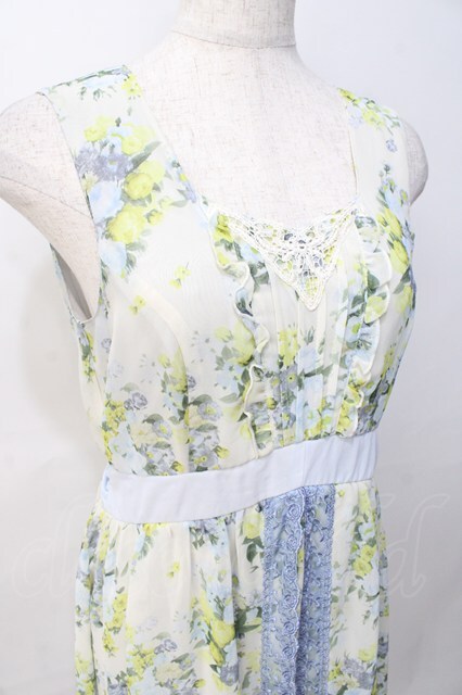 axes femme / 転写風ブーケ花柄ワンピース M サックス Y-25-08-08-078-AX-OP-SZ-ZI