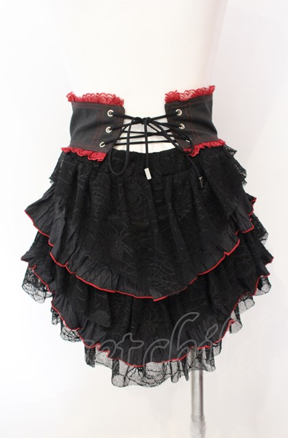 Qutie Frash / 蜘蛛の巣ティアードスカート【旧タグ】 ブラック×レッド O-25-08-09-011-QU-SK-IG-ZT222 [戻る]