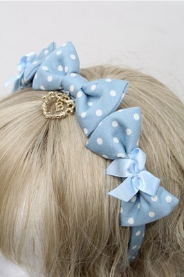 BABY,THE STARS SHINE BRIGHT / Dotツイルの3つリボンカチューシャ サックス S-25-08-08-017-BA-AC-AS-ZS