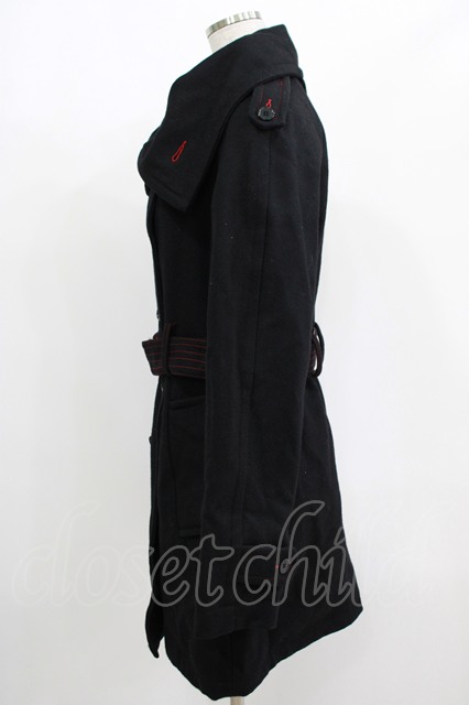 h.ANARCHY / カラーステッチベルト付コート 黒×赤 H-25-08-16-016-HN-CO-KB-ZT-C058