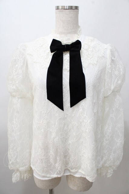 axes femme kawaii / レーシー2段パフ袖ブラウス M 白 Y-25-08-11-019-AX-BL-SZ-ZH