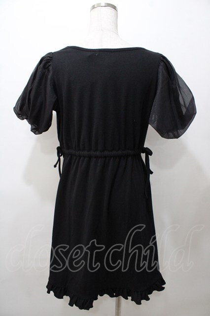 axes femme POETIQUE / シアーパフ袖カットミニワンピ M 黒 Y-25-08-11-049-AX-OP-SZ-ZT009